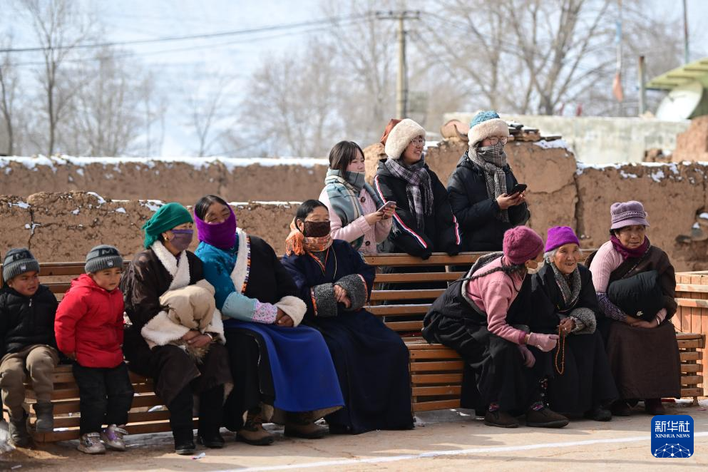 2月7日,贺隆堡村村民在观看舞蹈。新华社记者 张龙 摄